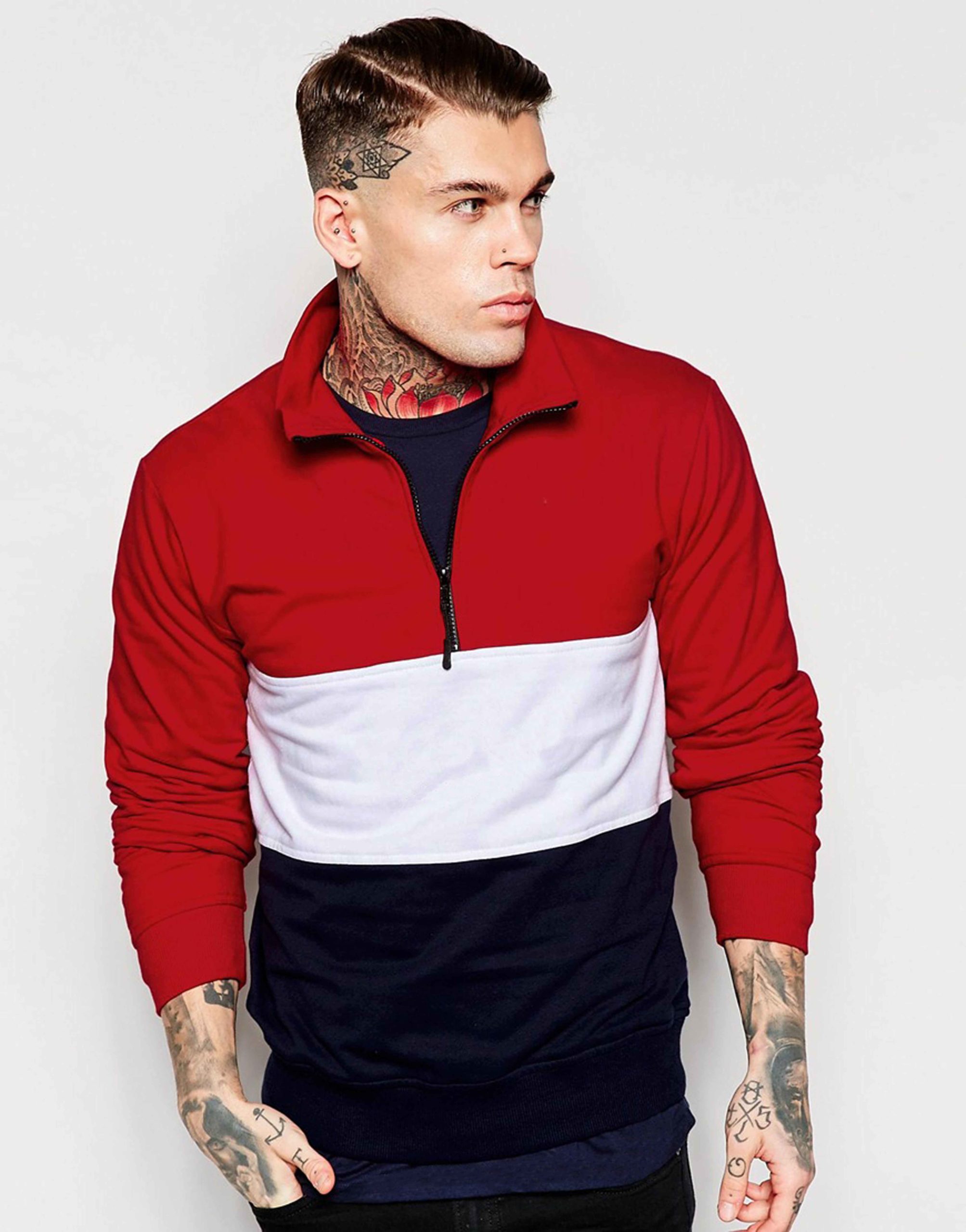 HIGH COLLAR CUT & SEW MEN’S FLEECE SWEATSHIRT